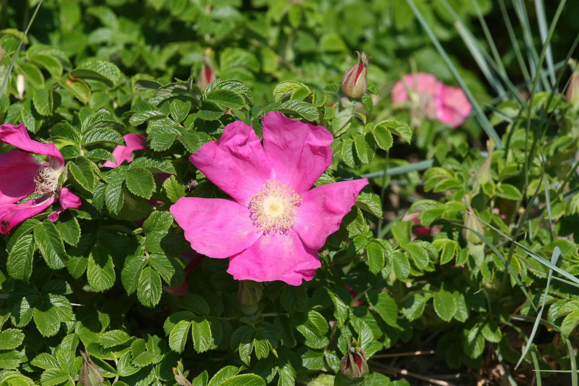 Rynket rose - også kaldet hybenrose – spreder sig invasivt langs mange danske kyster, hvor den fortrænger naturlig flora. Arten er indført fra Nordøstasien.