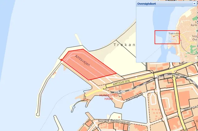 Grunden er på 10.004 m² og ligger centralt i havneområdet.