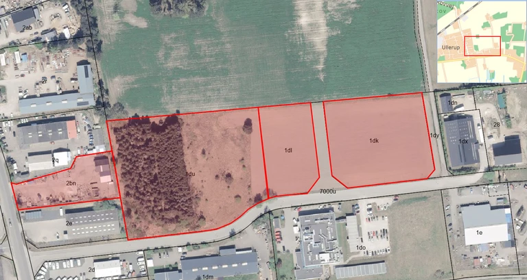 - Ullerup Skovvej 8, matr.nr. 2bn, Ullerup by, Torup, har et grundareal på ca. 3.520 kvm. med en lagerbygning på 144 kvm.